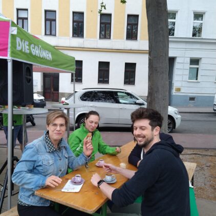 Aber nicht nur gefeiert und geplaudert wurde, sondern es gab auch viel Gelegenheit, dass die Bürger:innen ihre Wünsche und Anliegen den anwesenden grünen Bezirksrät:innen mitteilen konnten: