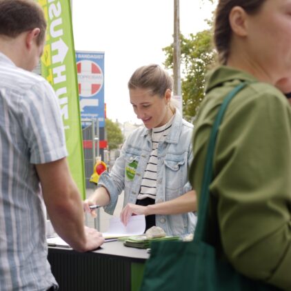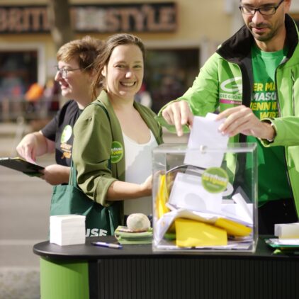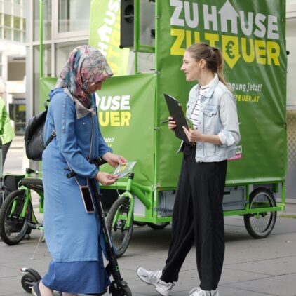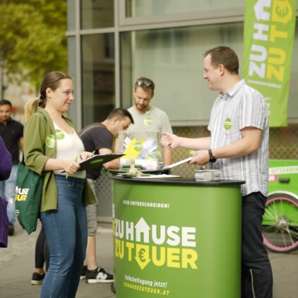 Am Samstag ist der Startschuss für die Volksbefragung der Wiener Grünen für leistbares Wohnen auch in Simmering gefallen.
