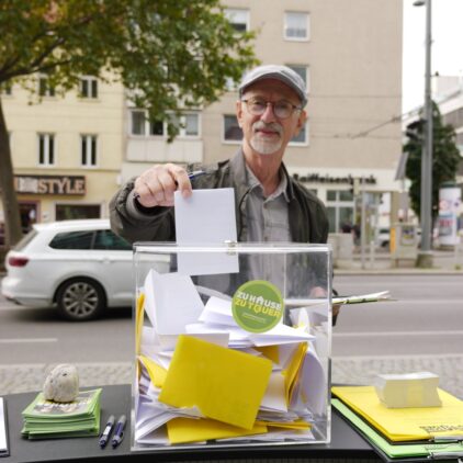 Die nächste Möglichkeit in Simmering für die Volksbefragung zu unterschreiben, wird am Sa, 7. Oktober beim Simmeringer Straßenfest sein. Die Grünen Simmering sind da mit einem Stand vertreten, einfach vorbeikommen!